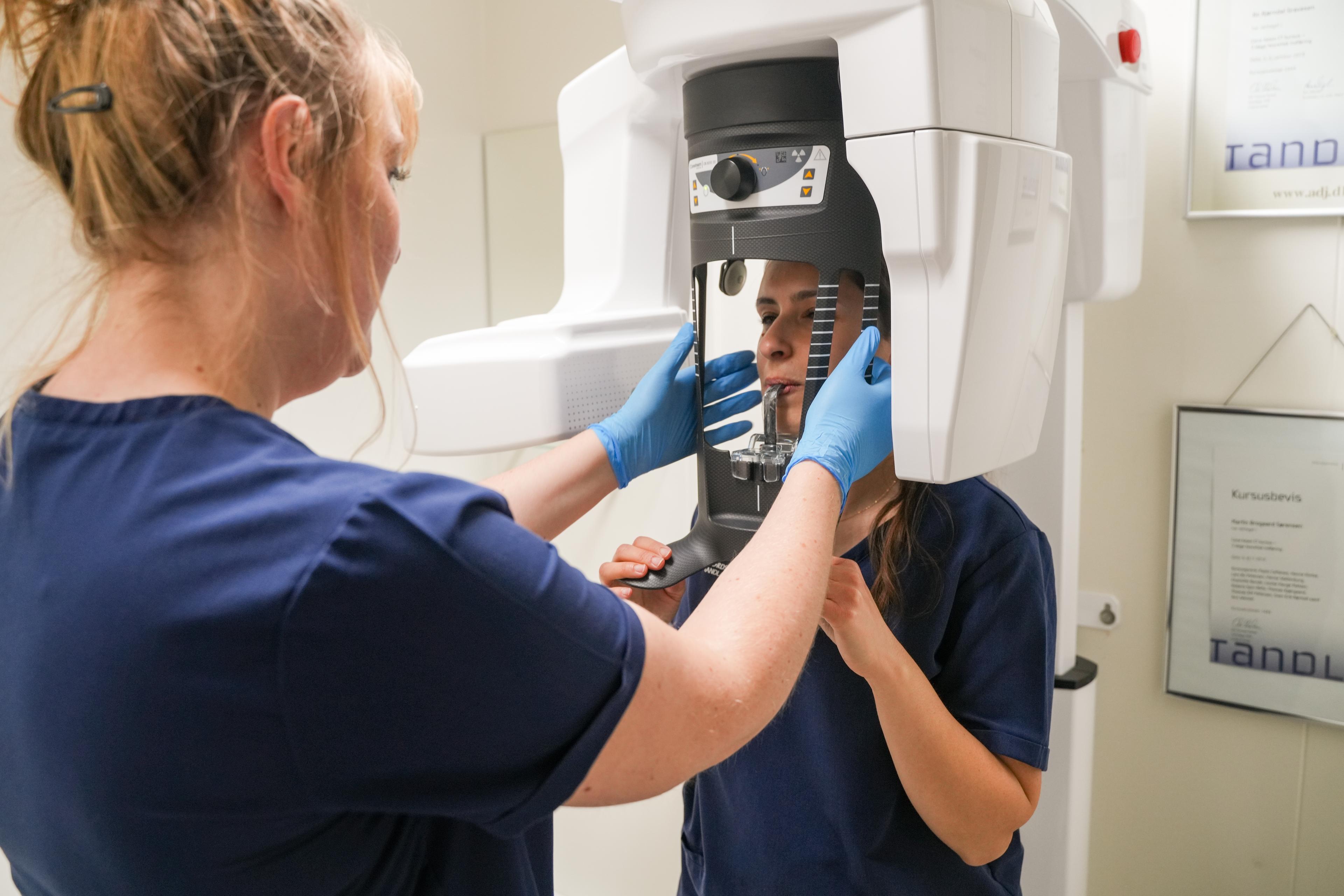Vores 3D røntgenscanner, også kaldet CBCT, tager et tredimensionelt billede af kæbestrukturen og tandsættet fra alle vinkler og i alle ønskede størrelser, så tandlægen kan få den allerbedste mulighed for at vurdere tandproblemet.